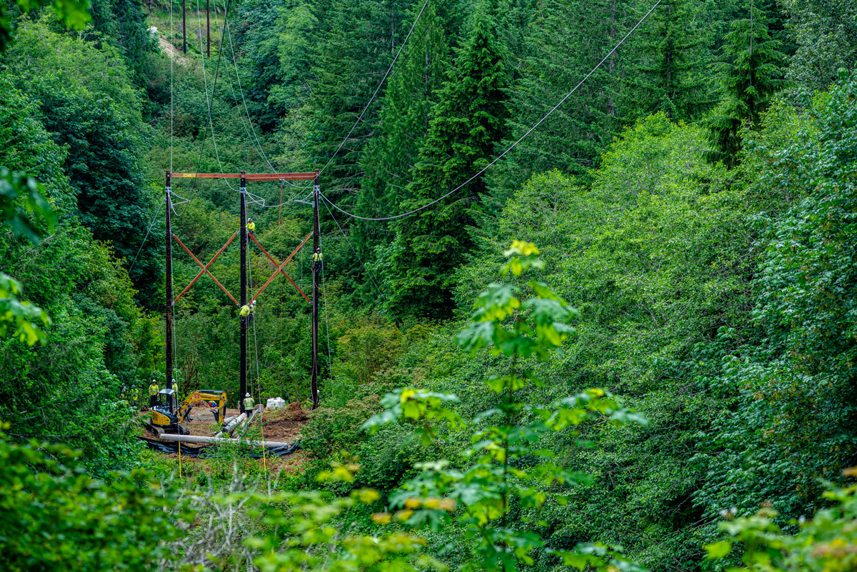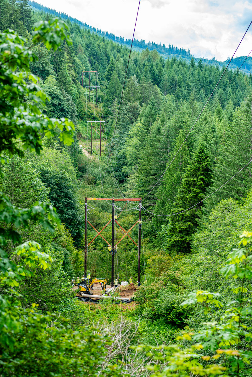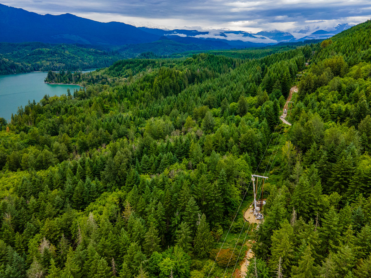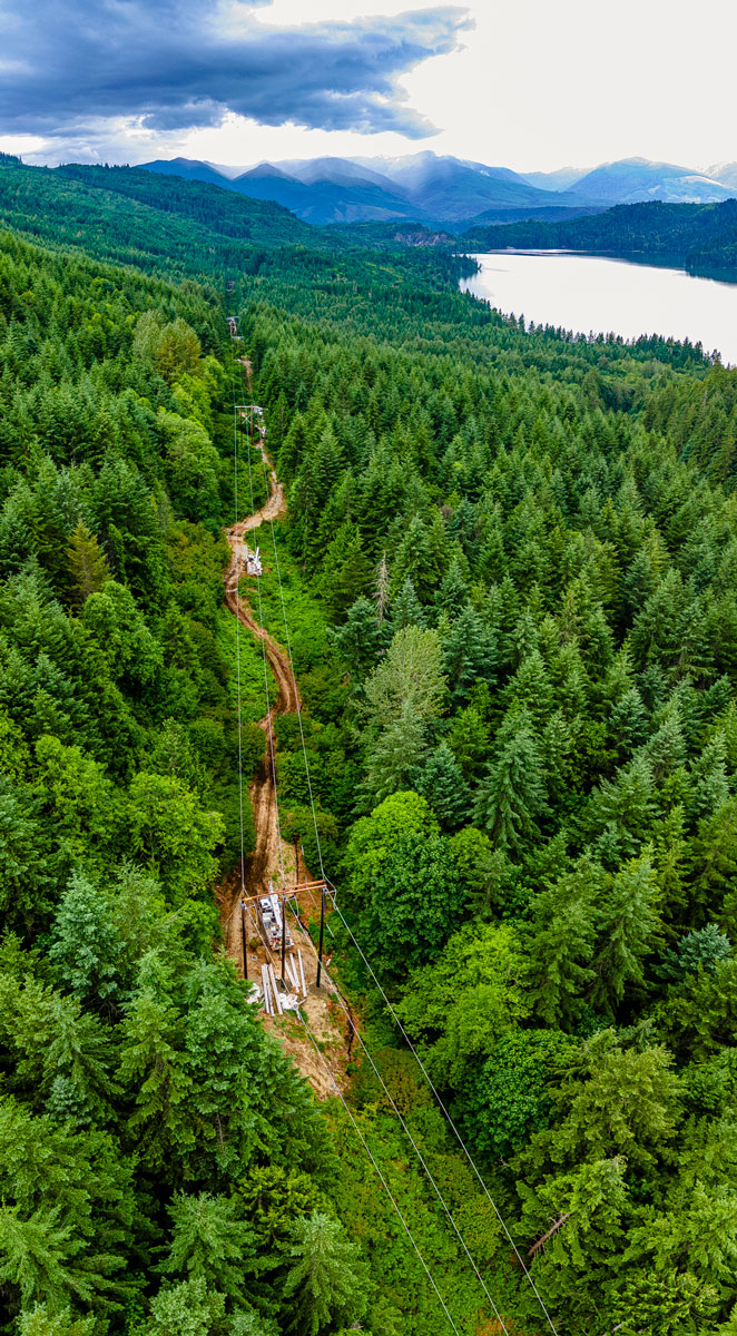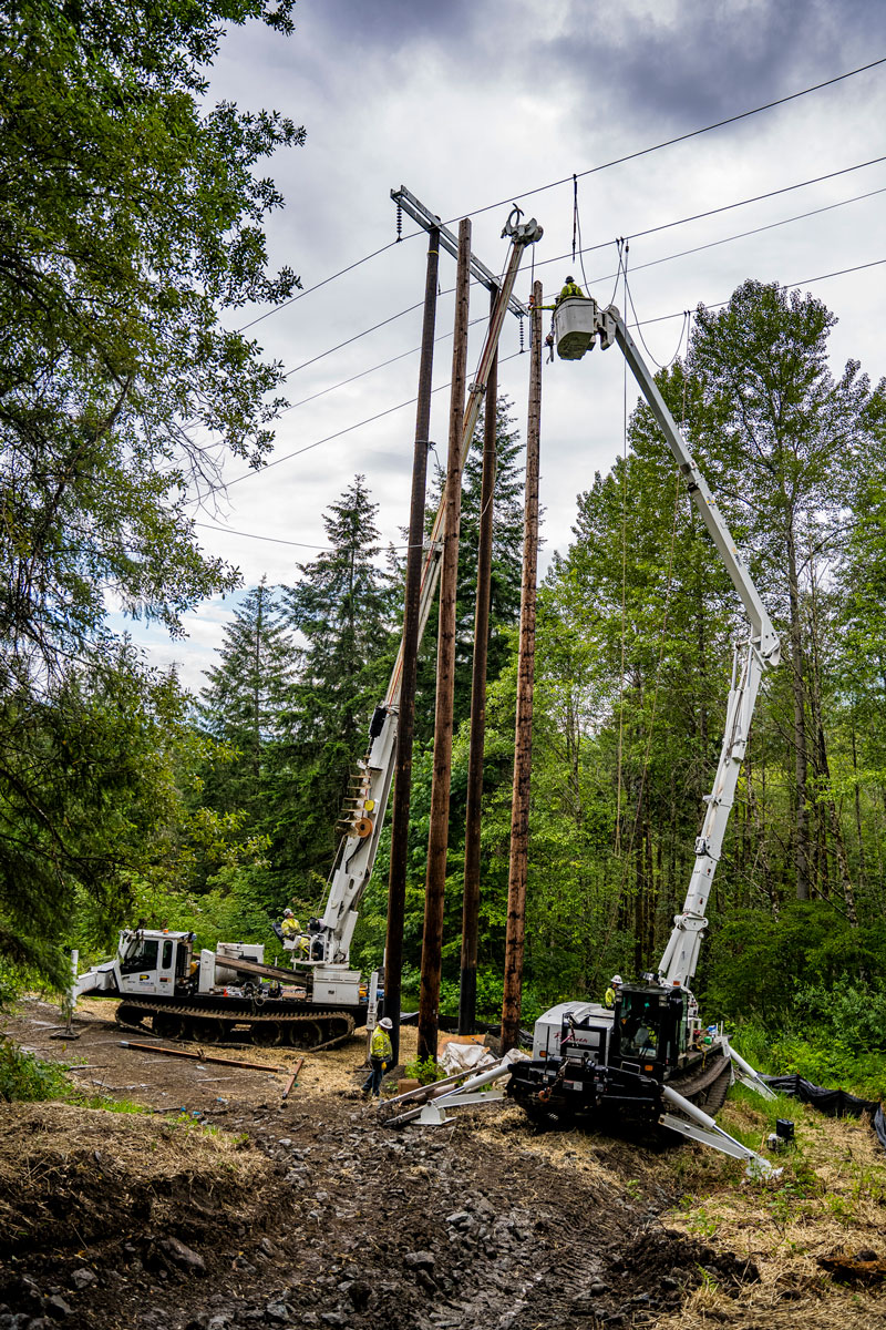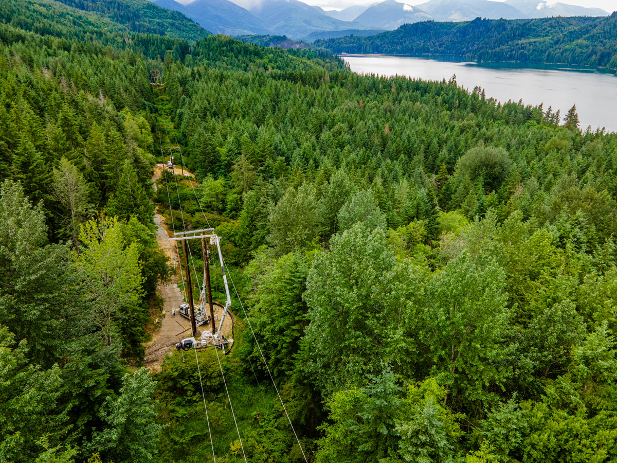 Potelco recently completed a critical upgrade to the Baker-Shannon transmission line, a 115kV line stretching from Baker Dam on Baker Lake to the lower Baker Dam on Lake Shannon. This project, aimed at mitigating fire risks, involved replacing 38 structures or a total of 94 poles, stretching over 8.5 miles.